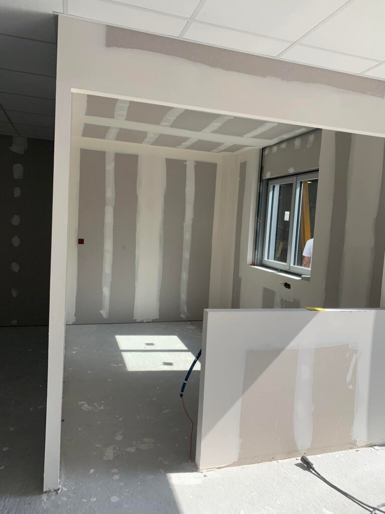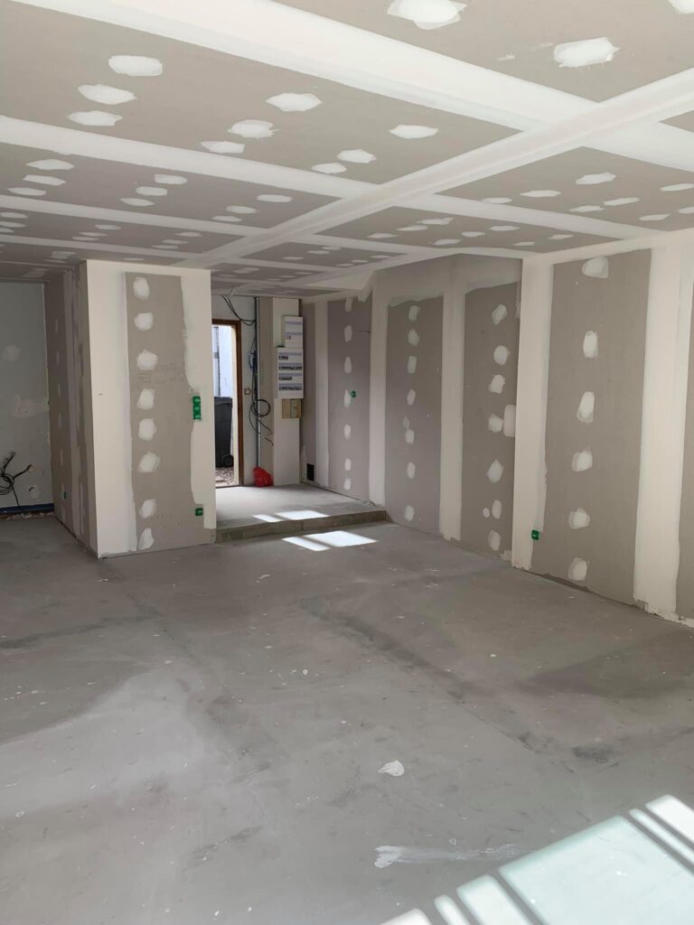 - Pose de plaques de plâtre et réalisation des travaux de finition par nos équipes de jointeurs expérimentés.