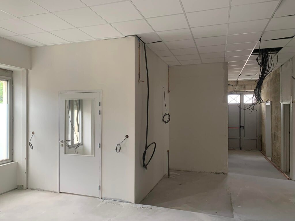 - Installation de faux plafonds suspendus respectant strictement les normes acoustiques et thermiques.